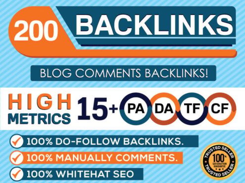 I will Do 200 Backlinks in High PA/DA CF/TF 15+ Do Follow Blog Comments Only