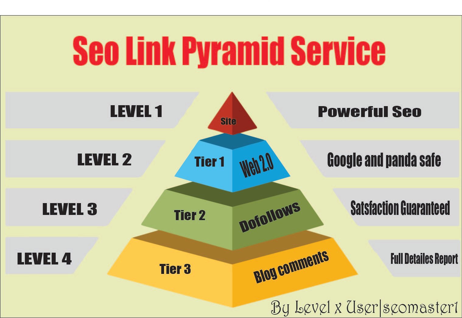 A website without backlinks is a website that cannot Rank! Link pyramid is one of the safest way to build a seo campaign. The backlink pyramid was one of the first backlinking strategies to be developed ever since big G began placing value on backlinks. Over the years the backlink pyramid proved its worth, it s easy to explain and useful in many ways. The strategy allows you to send high-quality backlinks in safe way to your money site, strengthens those high-quality links, and improves the index rate of those backlinks. Our link pyramids are a powerful, multiple tiered link building strategy which we have been designed to diverse link building patterns.