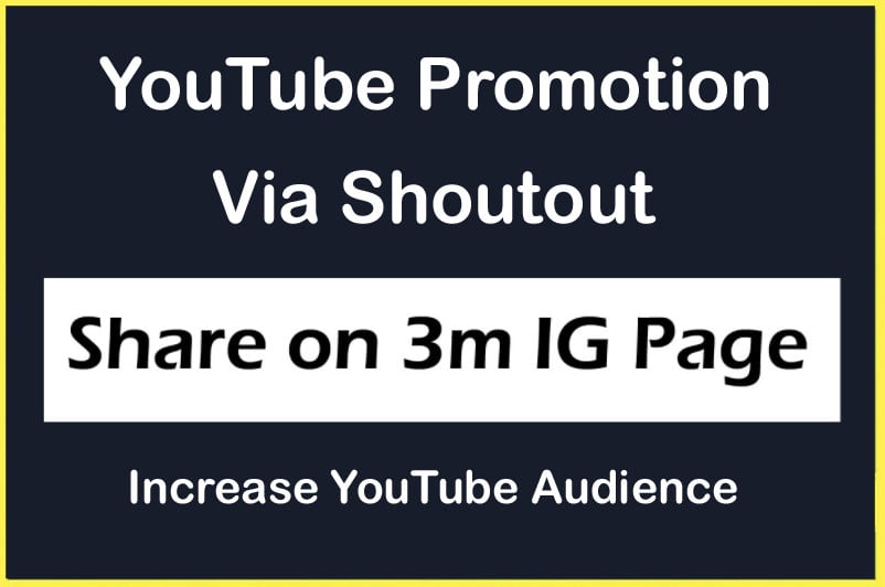 Promote Your Business Personal YouTube video to Real Audience via 3 million IG Shoutout.!!! This Gig Includes:-- Shoutout All types YouTube videos and channels Tag and mention on Story if you buy Story Package Rank your video on YouTube Will do promotion on active time of page. we can promote any types video account.. Why to choose us? Expertise in digital marketing. Shoutout to 3 Million active followers. Our followers are from All over the world... Drive awareness of your brand, product and Song Video Etc.. Make order and i am sure you will like my work... This GIG will give you excellent opportunity to expose your Brand Product or Services NOTE: I would love to guarantee that you ll get hundreds or thousands, but I cannot force anyone s hand to click on your URL or Watch time but i am sure you will get Enough Audience from my Promotion..